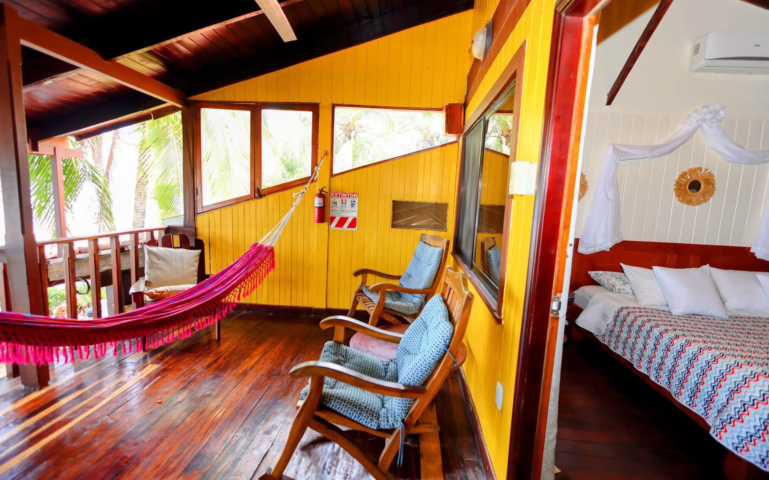 Our cozy rooms feature private bathrooms with hot water, ceiling fans, and air conditioning in most units. Choose an ocean-view room with a hammock or stay by the garden and pool, where you might spot howler monkeys in the trees.